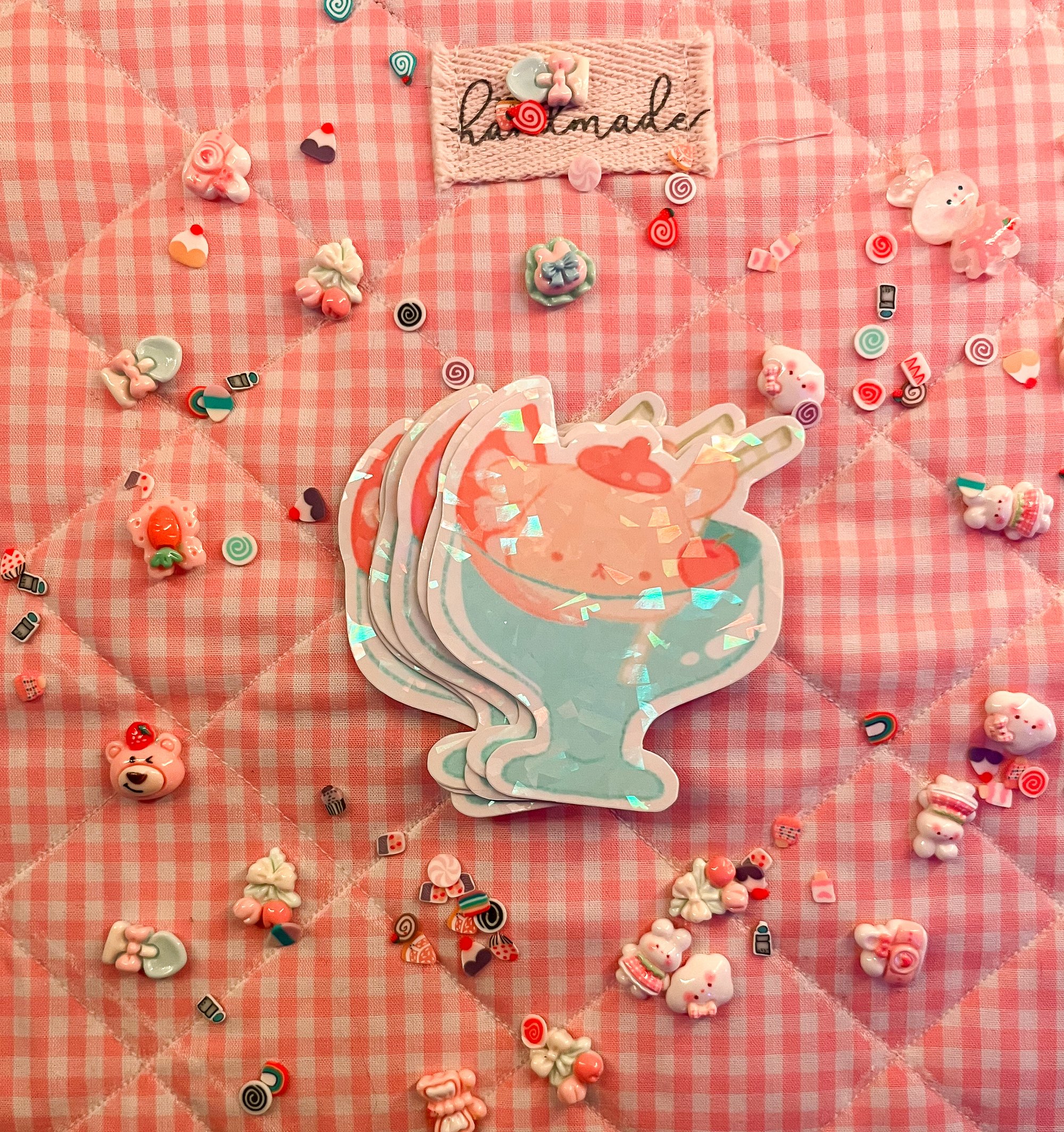🍸✨This adorable design featuring a little Pompompurin floating in a fruity summer drink ^v^ -made with a cricut maker 3 -laminated with sparkle paper ORDER YOURS TODAT